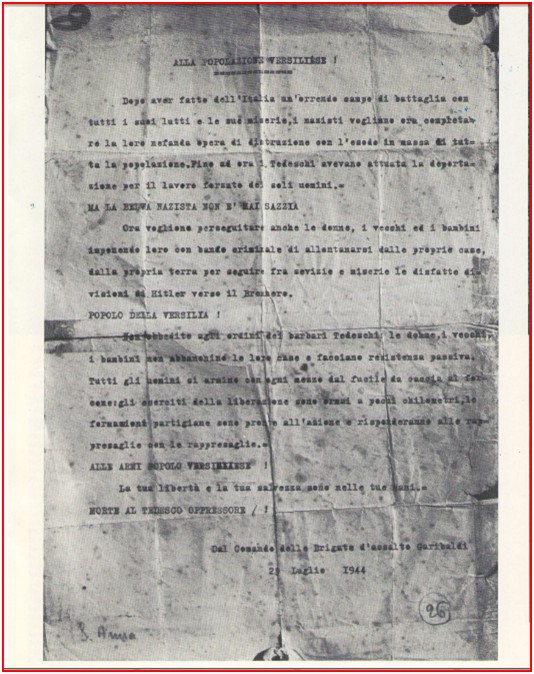 Dal comando delle Brigate d’assalto Garibaldi. 29 luglio 1944.”[38]