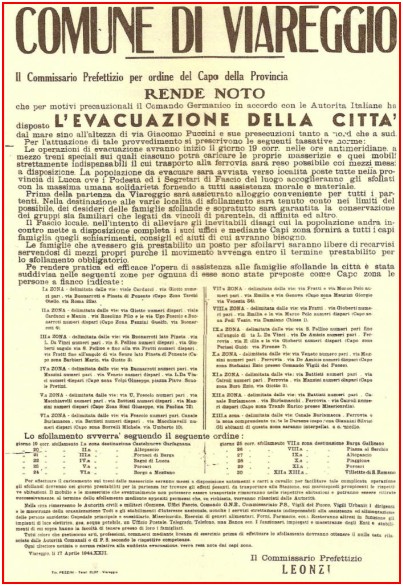 Non obbedite agli ordini dei barbari tedeschi: le donne, i vecchi, i bambini non abbandonino le loro case e facciano resistenza passiva. Tutti gli uomini si armino con ogni mezzo dal fucile da caccia al forcone: gli eserciti della liberazione sono ormai a pochi chilometri, le formazioni partigiane sono pronte all’azione e risponderanno alle rappresaglie con le rappresaglie. Alle armi popolo versiliese. La tua libertà e la tua salvezza sono nelle tue mani. Morte al tedesco oppressore!”