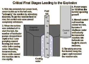 - Instabilità a bassa potenza: la caratteristica principale di questo tipo di reattore è la sua instabilità a bassa potenza: a valori inferiori al 20% di quella massima è suscettibile di sbalzi improvvisi. Questo sarà il fattore tecnico principale che provocherà l’incidente.