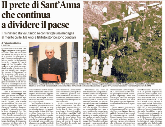 Questo sarebbe confermato indirettamente dalle parole dell’ex sindaco di Stazzema Lorenzo Alessandrini durante la presentazione del libro di Giuseppe Vezzoni “Tra le pieghe della strage nazifascista di Sant’Anna di Stazzema”: