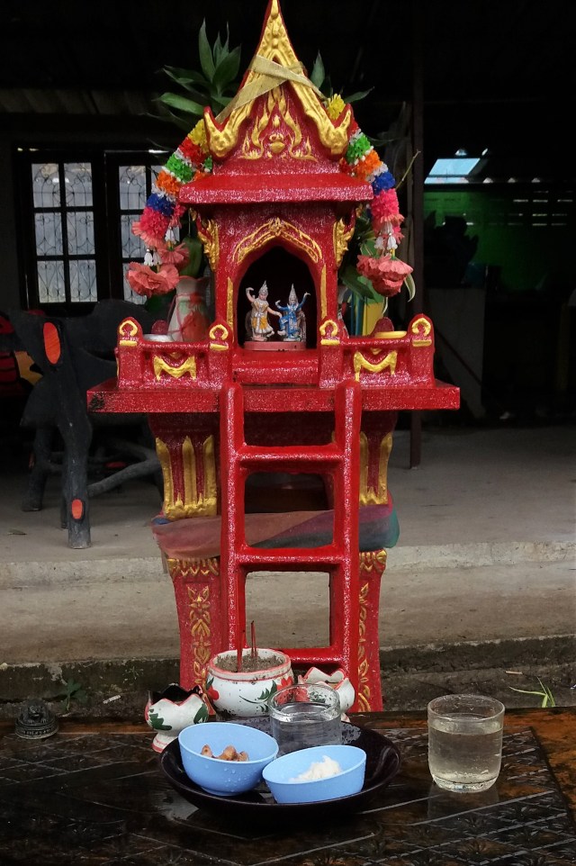 Ci sono tante credenze sotto il Buddismo. Ogni abitazione, ovunque, ha una casetta degli spiriti, con danzatrici, cibo e fiori: perchè se gli spiriti gradiscono, restano lì e non entrano in casa.