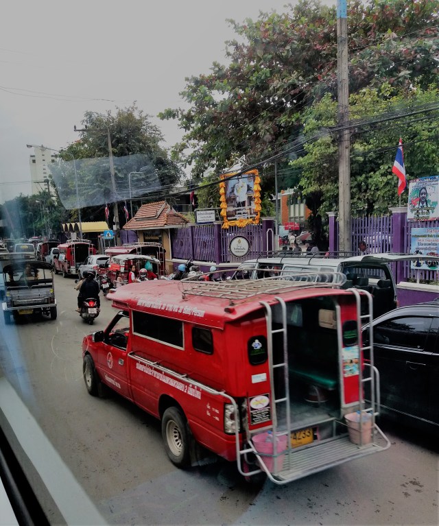 Per piccole comitive in città c’è il Pickup: Chiang Mai, davanti a una scuola.